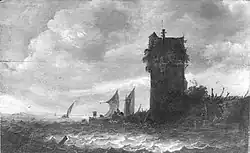 NK3386 | Navolger van J.J. van Goyen | Pier met uitkijktoren Archived 2020-10-09 at the Wayback Machine | 1986 | depot ICN |