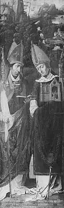 NK1472 | Atelier van Neri di Bicci | De aartsengel Rafael begeleidt twee Dominicanen op hun reis - deel van een predella Archived 2023-01-21 at the Wayback Machine | 2669 | Bonnefanten museum |