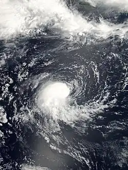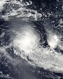 On 4 February, the Tropical Cyclone Warning Centre (TCWC) in Perth identified a Tropical Low South west of Christmas Island, and began issuing shipping warnings.[39] Initially it was predicted that the system would intensify into a tropical cyclone but later on 4 February, the cyclone began to weaken with the final gale warnings being issued by TCWC Perth later that day. Over the next few days the system drifted eastwards and then on 6 February began showing signs of intensification.[40] The following day, the Joint Typhoon Warning Center (JTWC) issued its first advisory, designating the low as Tropical Cyclone 17S.[41] Later that day TCWC Perth reinstated Gale warnings on the tropical low.[40] On 10 February The TCWC Perth and the JTWC issued their final advisories on the system.[42]