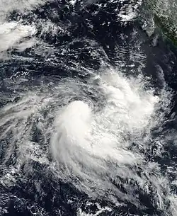 On 29 July, an area of low pressure, close to the edge of RSMC La Reunion's Area of responsibility, was designated as Tropical Disturbance 01R. However, this number was withdrawn in RSMC La Reunion's post–storm analysis.[2] The JTWC issued a Tropical Cyclone Formation Alert (TCFA) on the developing system on 29 July,[3] and initiated warnings on the tropical cyclone late that day, designating it as Tropical Cyclone 01S.[4] However, by this time, the cyclone had crossed 90E and entered TCWC Perth's Area of Responsibility, which designated it as a Tropical Low and issued shipping warnings on the Tropical Low.[2] Early on 30 July, the tropical cyclone began to dissipate, so the JTWC issued their final advisory on the system on that day.[5] and the Bureau of Meteorology issued its last warning the next day.[2]