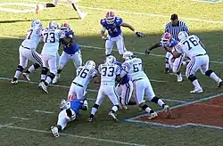 Florida Atlantic attempts a running play in the fourth quarter of their 59–20 loss at Florida.