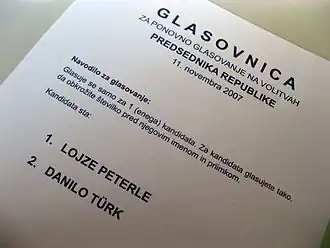 - ^ "Predsedniške volitve 2007" (in Slovenian). Žurnal24. Archived from the original on 28 September 2008. Retrieved 5 September 2008.