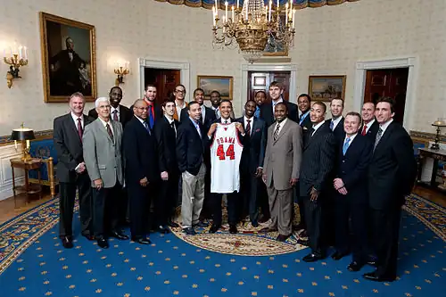 The Bulls beat the odds and won the NBA Draft Lottery on May 20, 2008. The Bulls vaulted from the ninth spot to win the NBA Draft Lottery in Secaucus, NJ, and obtain the first pick in the June 26 NBA Draft.[6] Chicago had a 1.7 percent chance of winning and were represented by Executive Vice President, Business Operations Steve Schanwald. The Heat had the best odds of securing the top selection and will pick second followed by the Timberwolves and Sonics.
