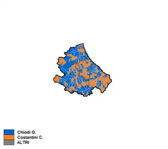 On election day Gianni Chiodi defeated Carlo Costantini. The election was a major defeat for the PD, while IdV had a very good result, despite the poor showing of its candidate, who won fewer votes than its supporting parties.