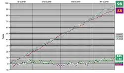| Scoring by quarter: 14–35, 26–23, 31–15, 26–18 | ||