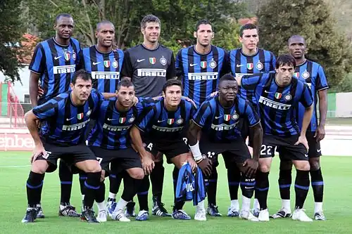 ![]() Inter players line up before a pre-season friendly against Bahrain in August 2009 | ||||