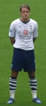 Tottenham began their pre-season schedule on 15 July 2009 with an away trip to St. James Park to face Exeter City.[10] Tottenham won the encounter 3–0 against their League One opponents. A first-half goal from Jamie O'Hara set Spurs on their way before two goals in ten minutes from Aaron Lennon and Darren Bent ensured Tottenham's pre-season began with a winning start.[11] Two days later, Tottenham took a southwest trip by facing both Harry Redknapp and Kevin Bond's former club, AFC Bournemouth. Tottenham replicated their result by running out 3–0 winners. Robbie Keane got his first goal of the pre-season campaign halfway through the first half, followed by a goal from Jermain Defoe, returning to his former club with whom he had a successful loan period in the 2000–01 season. The game was rounded off by a goal from Wilson Palacios, scoring his first-ever goal in English football.[12]