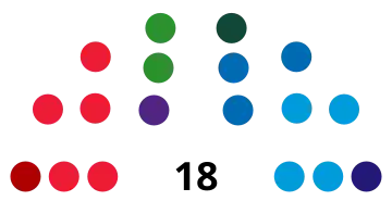 Last election 5 seats, 24.56% 4 seats, 18.25% 2 seats, 9.86%