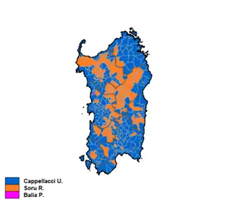 | Gavino Sale | 29,640 | 3.06 | - | Independence Republic of Sardinia | 17,141 | 2.07 | 0 | - | ||