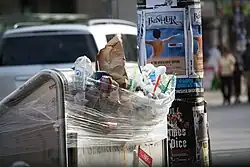 The cessation of garbage collection was one of the more noticeable effects of the labour disruption. Four days into the strike the city announced 19 temporary garbage drop off locations for residential waste. This decision proved controversial in the neighbourhoods containing the sites as residents expressed concerns about pesticide and rodenticide spraying, as well as odour and leaching caused by the piles of garbage.[5] Junk removal entrepreneurs took the opportunity to increase their customer base, specifically because plenty of residents were left without options to deal with their garbage.[6]