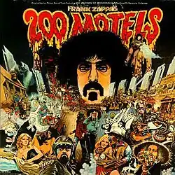 200 Motels, the soundtrack album to Frank Zappa's film of the same name, was released by United Artists Records in 1971.[2] The original vinyl release was a two-record set, largely containing alternating tracks of rock music performed by the Mothers of Invention and symphonic music performed by the Royal Philharmonic Orchestra conducted by Elgar Howarth, all composed and orchestrated by Zappa. The album peaked at No. 59 on the Billboard 200, though reviewers deemed it a peripheral part of Zappa's catalog.[2] Like the film, the album involves the theme of a rock band on tour and a loose satirical storyline about The Mothers of Invention going crazy in the small town of Centerville and bassist Jeff quitting the group, as did his real life counterpart, Jeff Simmons, who left the group before the film began shooting and was replaced by actor Martin Lickert for the film.[2]