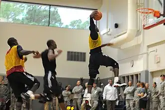 A Miami Heat practice session at the team's preseason training camp in Hurlburt Field, Florida, in late September 2010
