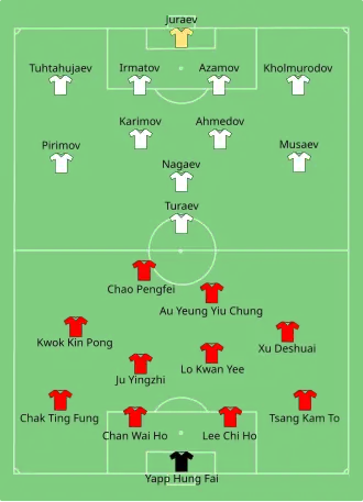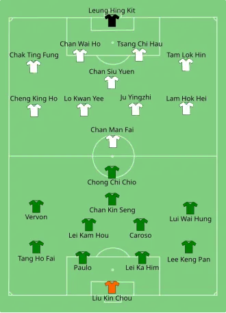 MF 11 Lai Yiu Cheong Yellow card 89' upward-facing green arrow 53'
