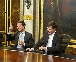 - ^ Van Kessel, Alexander (2016b). "Volgens nieuwe regels". In Van Baalen, Carla; Van Kessel, Alexander (eds.). Kabinetsformaties 1977-2012 (in Dutch). Amsterdam: Boom. pp. 511–512. ISBN 9789461054661.