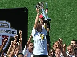 FC Gold Pride raise the 2010 WPS Championship trophy | |||