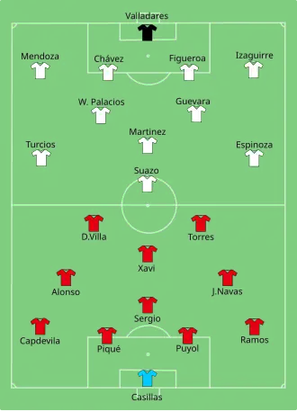 - ^ a b "Tactical Line-up – Group H – Chile-Spain" (PDF). FIFA.com. Fédération Internationale de Football Association. 25 June 2010. Archived from the original (PDF) on 2 July 2010. Retrieved 25 June 2010.