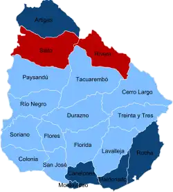 Following is a list of the departments in Uruguay, with the name of the intendente elected, his party affiliation and the faction within the party to which he belongs: