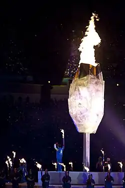 The final torch bearer was 15-year-old snowboarder Zach Beaumont, who is an amputee.