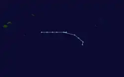 | Peak intensity | 55 km/h (35 mph) (10-min); 994 hPa (mbar) |