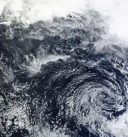 Cyclone Jasmine was a long–lived annular tropical cyclone that affected several countries, particularly Vanuatu and Tonga, over a 19‑day span. Cyclone Jasmine developed from an area of disturbed weather on February 1 in the Gulf of Carpentaria.[33] Initially, the storm moved towards the east and across the Cape York Peninsula.[34] As it moved across the South Pacific, earlier existing wind shear conditions lessened, and Jasmine began to strengthen at a faster rate. Steadily intensifying, Erica reached peak intensity on February 8 as a Category 4 equivalent on the Saffir–Simpson hurricane scale, while beginning to show annular characteristics. The next day Jasmine entered an area of vertical wind shear, which consequently weakened the cyclone and caused its eye to expand. A high-pressure area south of Jasmine later steered the weakening cyclone to the northeast on February 12.[35] Although it entered an area of warmer sea surface temperatures, Jasmine subsequently entered extratropical transition and later degenerated into an extratropical cyclone on February 16, before dissipating completely on February 19.[36]