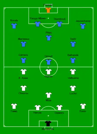Montpellier entered the match without two players due to suspension. Bosnian international Emir Spahić and French youth international El Kaoutari. El Kaoutari missed the final due to his previously mentioned altercation with Loïc Rémy. Due to previously being given a yellow card in the match, the defender was given a second yellow card for the confrontation with the Marseille striker. Montpellier was also without French youth international Karim Aït-Fana due to injury.[34]
