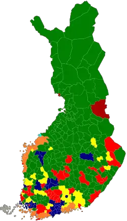 Parliamentary elections were held in Finland on 17 April 2011 after the termination of the previous parliamentary term. Advance voting, which included voting by Finnish expatriates, was held between 6 and 12 April with a turnout of 31.2%.[1][2]