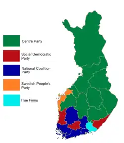 - ^ "Eduskuntavaalit 2011 – tulospalvelu" (in Finnish). Finnish Broadcasting Company. Archived from the original on 9 October 2012. Retrieved 27 June 2011.