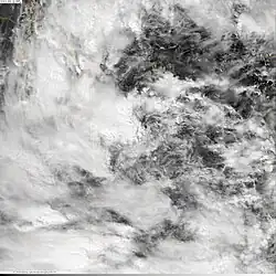 Late on September 20, an area of low pressure developed approximately 200 nautical miles (370 km; 230 mi) south of Chittagong, Bangladesh.[22] Under the influence of strong vertical wind shear and monsoonal activity in the Bay of Bengal, the system was unable to strengthen and the JTWC later reported that the system had dissipated.[23] However, on September 22, the IMD started monitoring the system as a Depression and initiated bulletins on the system, designating it BOB 03.[24] Late on that day, BOB 03 drifted northwest and made landfall over north Orissa close to Balasore.[25] After moving further northwestwards, the depression remained practically stationary over Jharkhand. By the evening of September 23, IMD reported that the depression had weakened into a well-marked low-pressure area in their final bulletin for the system, as the storm dissipated to a remnant low.[26]
