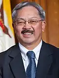 Gavin Newsom, first elected in 2003 and reelected in 2007, was elected Lieutenant Governor of California in 2010 and sworn in on January 10, 2011.[2] Ed Lee was appointed by the San Francisco Board of Supervisors to finish the balance of Newsom's mayoral term and was sworn in on January 11, 2011. Lee initially pledged not to seek election, although an active movement arose to draft him into the race.[3][4] By the end of July observers were expecting that Lee would agree to run.[5] On August 8, 2011, Lee announced he was running for Mayor of San Francisco.[6]