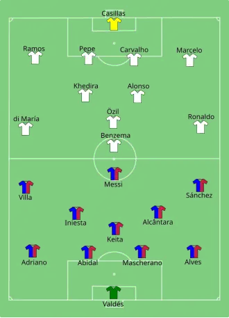 The 2011 Supercopa de España was a two-legged Spanish football match-up that was played on 14 and 17 August 2011. It was contested by Barcelona, the 2010–11 La Liga winners, and Real Madrid, the 2010–11 Copa del Rey winners. Barcelona won 5–4 on aggregate for their record-extending tenth Supercopa de España title.