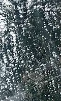 The supercell produced a large wedge tornado in rural Greene County, Alabama, which tracked towards the adjacent Tuscaloosa County at EF2 intensity, uprooting numerous trees and causing minor damage to structures. Near Union at 4:50 p.m. CDT, footage of the wedge tornado was captured by meteorologist John Oldshue during a storm chase for Birmingham ABC affiliate WBMA-LD/WCFT-TV/WJSU-TV (channels 58, 33, and 40 – "ABC 33/40"), which broadcast Oldshue's live video of the tornado as he was tracking it outside of town. This was the first video evidence that the tornado had touched the ground; the video, along with NEXRAD evidence of a tornado debris signature, prompted the National Weather Service office in Birmingham to declare a tornado emergency. Rapidly intensifying, the tornado moved towards the southern and eastern portions of Tuscaloosa at around 5:10 p.m. CDT (22:10 UTC).[11][1] Skycams operated by Tuscaloosa-based television station WVUA-CA (channel 7) as well as Birmingham Fox affiliate WBRC (channel 6) and ABC 33/40, and a ground-based camera crew with CBS affiliate WIAT (channel 42) captured video of the tornado as it struck Tuscaloosa. The ABC 33/40 feed was periodically disrupted due to power outages caused by wind damage to electrical transformers. As it entered the city, Skycam footage showed surface condensation in the tornado, outside of a visible debris cloud, had briefly lifted; a discernible wedge-shaped condensation funnel, with occasional horizontal and vertical subvortices, subsequently touched back down at the surface as it began moving into neighborhoods in southern Tuscaloosa.[12]