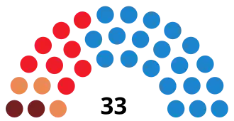 Last election 21 seats, 56.7% 12 seats, 33.8% Did not contest