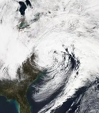 ![]() NASA satellite image of a strong nor'easter over New England on February 9, 2013 | |