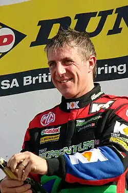 Drama started almost immediately, when Gordon Shedden's Civic caught fire[19] in the first free practice, causing the Scotsman to set no competitive time in qualifying, which belonged to Frank Wrathall, setting his maiden pole position and a new course record.[20] Race one though saw Jason Plato win after starting second on the grid and taking the lead into the first turn. Wrathall managed to bring his Dynojet Toyota home second. Third place went to Andrew Jordan who narrowly beat Dave Newsham to the line after the two drivers came together several times during the final lap. However, Newsham would later be disqualified after being found underweight.[21] This promoted Matt Neal to fourth, whilst his teammate Shedden removed from last on the grid to seventh. Debutant Holland failed to finish the race after crashing at turn one with Adam Morgan. Race two saw old rivals Plato and Neal once again come together amid frantic action for the win. Plato had led from the start; however Neal took the lead after sending the MG into a large slide coming through the penultimate corner. At the next turn, Plato returned the favour sending both Neal and himself off the track. This promoted Pirtek's Andrew Jordan to his first win of the season and Gordon Shedden up to second with Plato and Neal finishing third and fourth respectively. The reverse grid race three saw the ex-888 Vectras of Lea Wood and Dave Newsham lead the early laps in first and second respectively, until lap four, where Newsham took the lead where he stayed till the end, taking his first BTCC win. A career first podium wasn't on the cards though for Wood, after a gearbox failure with only three laps to go. This left Tom Onslow-Cole with second place and Shedden crossing the line in third place ahead of Jason Plato. However, post-race scrutineering found that Shedden's Honda had been over-boosting, thus disqualifying him from the results.[22] This promoted Plato to third, whilst Neal recovered from and early spin, which sent him to the back of the field, to finish eighth.[23]