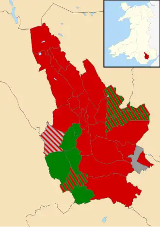 The Labour Party won control of the council from Plaid Cymru, after gaining an additional 18 seats.[2] Four council candidates were elected unopposed.[3]