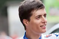 Coppel was the best-placed rider of the octet, as he was in fifteenth place overall overnight around four-and-a-half minutes down on race leader Bradley Wiggins (Team Sky); as such, the breakaway's advantage was not allowed to gather momentum and the gap remained between two and two-and-a-half minutes for the majority of the stage.[78] Team Sky allowed BMC Racing Team to carry out most of the work in the peloton, with Wiggins keeping an eye on their rider Cadel Evans, who had made a late-race attack the previous day and gained time back to Wiggins. Coppel, Westra and Rolland, the break initiators, then went clear again on the second-category Côte de la Vernaz, but the peloton were still closing in on them, after chasing down a group that had got clear on the climb. Vincenzo Nibali (Liquigas–Cannondale) remained off the front, and tried to close down the leaders.[79] Rolland and Coppel dropped Westra on the descent from the following Col du Corbier climb, where he was eventually joined by Nibali, but the solo move that he had put in was starting to show as he could not stay with Westra, and was eventually caught by the BMC Racing Team-led peloton with around 10 km (6.2 mi) remaining.[78]