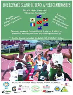 1. ^ Greenaway, Dean (May 22, 2012), BVI Hosting Leeward Islands Jr. Championships June 9–10, British Virgin Islands Athletics Association, retrieved February 28, 2014