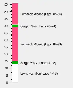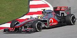 The 2012 Malaysian Grand Prix (officially the 2012 Formula 1 Petronas Malaysia Grand Prix) was a Formula One motor race held on 25 March 2012 at the Sepang International Circuit in Selangor, Malaysia. It was the fourteenth running of the Malaysian Grand Prix as a round of the Formula One World Championship, and the thirty-second time the event has been held. The 56-lap race was the second round of the 2012 Formula One season and was won by Ferrari driver Fernando Alonso.[5] Sergio Pérez of the Sauber team finished the race in second position, and McLaren driver Lewis Hamilton completed the podium with third place after starting in pole position.[6]
