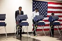 Presidential elections were held in the United States on November 6, 2012. Incumbent Democratic President Barack Obama and his running mate, incumbent Vice President Joe Biden, were elected to a second term.[3] They defeated the Republican ticket of former Governor of Massachusetts Mitt Romney and U.S. Representative Paul Ryan of Wisconsin.