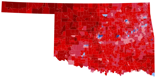 With an extremely socially conservative electorate, Oklahoma has in recent years become one of the most Republican states in the nation. For the third cycle in a row, the Republicans won over 65% of the vote and swept every single county in the state.