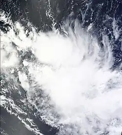 Tropical Disturbance 05F was first noted on December 23, while it was located about 75 km (45 mi) to the north of Mata-Utu in the island nation of Wallis and Futuna.[9] The system was located within a marginal environment for further development, which contained low to moderate vertical wind shear and had a good outflow.[9]