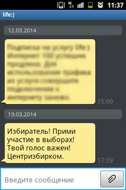 - On 19 March CEC started sending SMS with call to come for elections via all three mobile service providers (see photo).[11]
