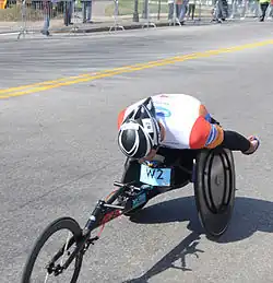 ![]() Tatyana McFadden near halfway point in Wellesley |