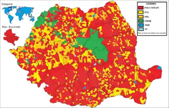 | County | PSD | PNL | PDL | Mircea Diaconu | UDMR/RMDSZ | PMP | PP-DD | PRM | FC | PER |