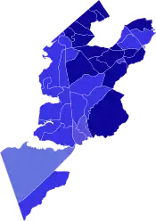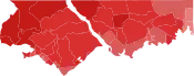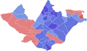 Democratic: 50–60% 60-70% 70–80% 80–90% >90%