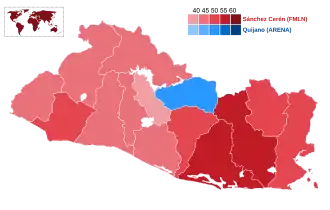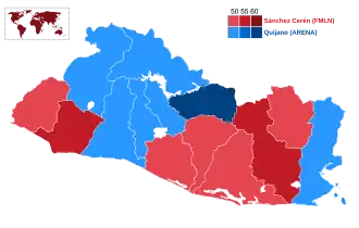 | Salvador Sánchez Cerén | Óscar Ortiz | Farabundo Martí National Liberation Front | 1,315,768 | 48.93 | 1,495,815 | 50.11 | |