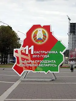 - ^ Parliament approves 11 October 2015 as Belarus president election date Archived July 4, 2015, at the Wayback Machine Belta, 30 June 2015