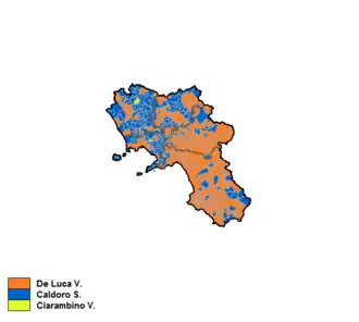 The 2015 Campania regional election took place on 31 May 2015.[1][2] The centre-left coalition candidate Vincenzo De Luca defeated the incumbent president, Stefano Caldoro of Forza Italia within the centre-right coalition, and became the new president of Campania. Until the 2024 Sardinian regional election, this was the last regional gain for the centre-left coalition.
