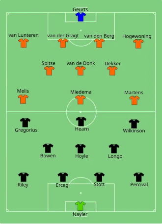 - ^ a b "Tactical Line-up – New Zealand-Netherlands" (PDF). FIFA.com. Fédération Internationale de Football Association. 6 June 2015. Archived from the original (PDF) on 2 July 2015. Retrieved 6 June 2015.