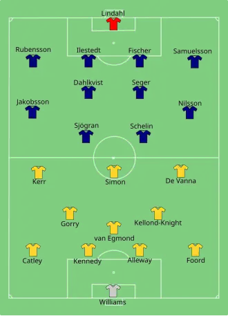 - ^ a b "Tactical Line-up – Australia-Sweden" (PDF). FIFA.com. Fédération Internationale de Football Association. June 16, 2015. Archived from the original (PDF) on June 17, 2015. Retrieved June 16, 2015.